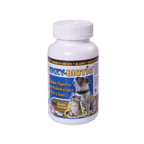 Enzy-Biotic es un suplemento veterinario con enzimas digestivas y probióticos que apoya la salud intestinal en perros y gatos. Ideal para mejorar la digestión y mantener el equilibrio de la flora intestinal.