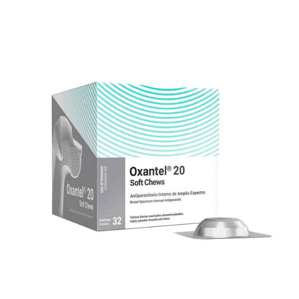 Oxantel 20 kg es un desparasitante interno formulado para perros de hasta 20 kg, indicado para el control de parásitos intestinales comunes.